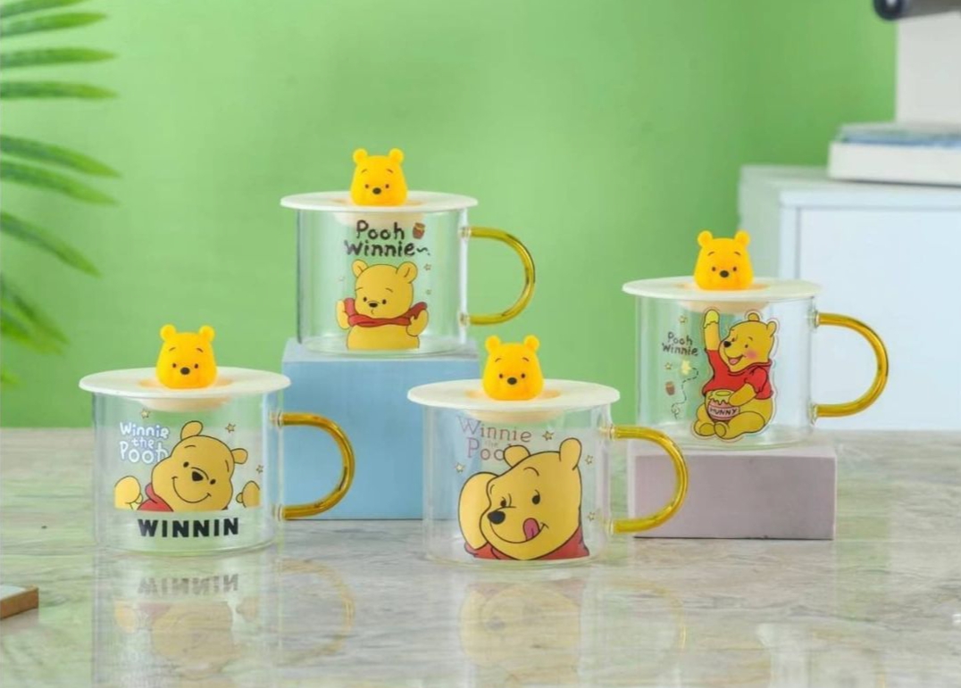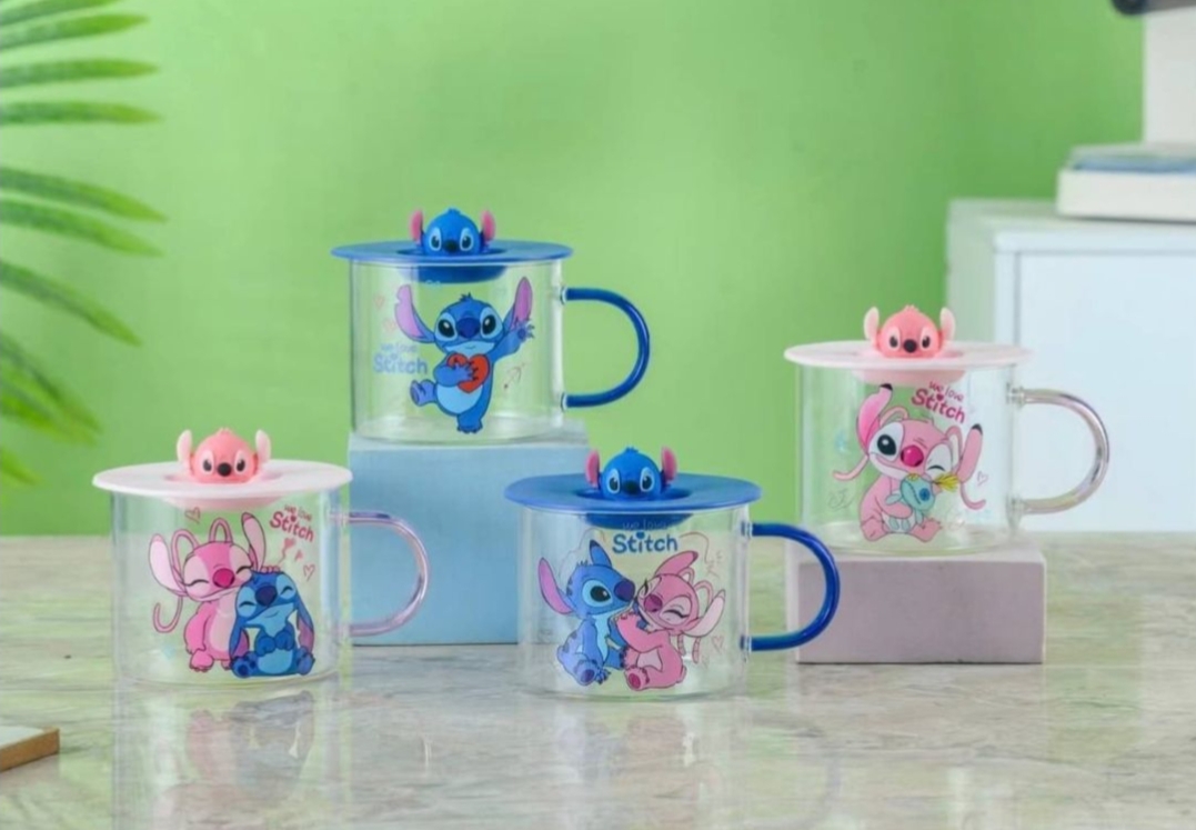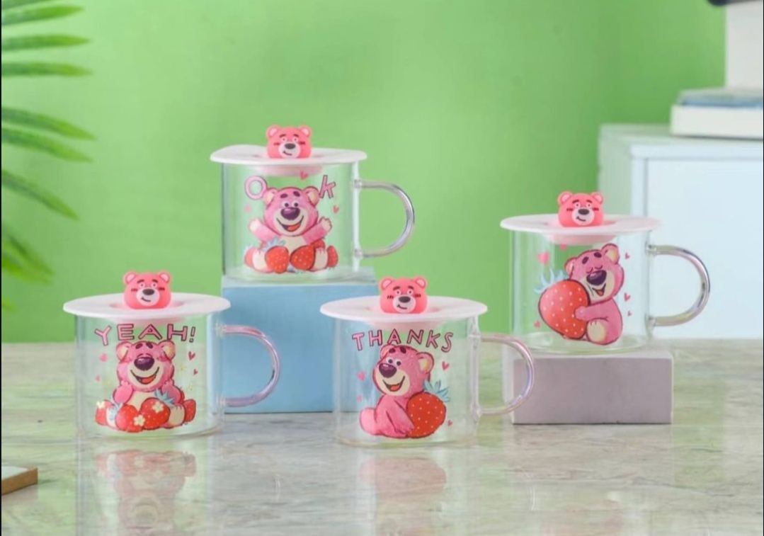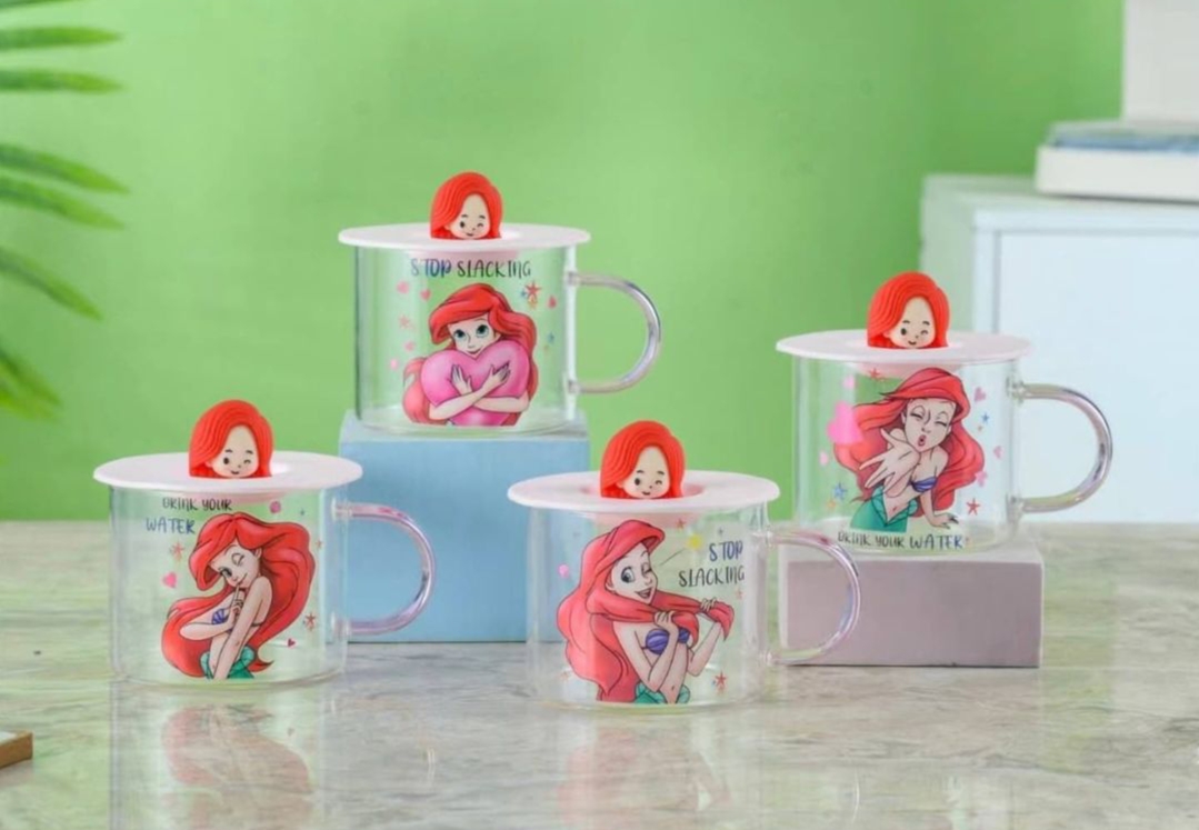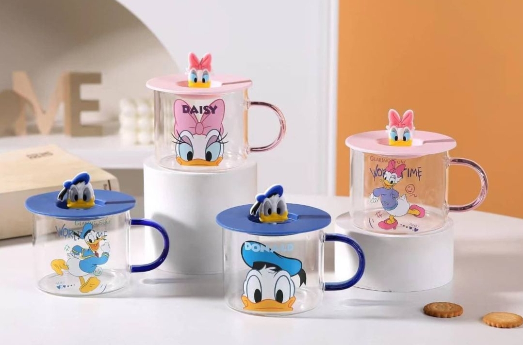 مج زجاج ديزني مستورد بغطاء رابر شخصيه ديزني مجسمه للمشروبات الساخنه والبارده سعه المج 350 مللي