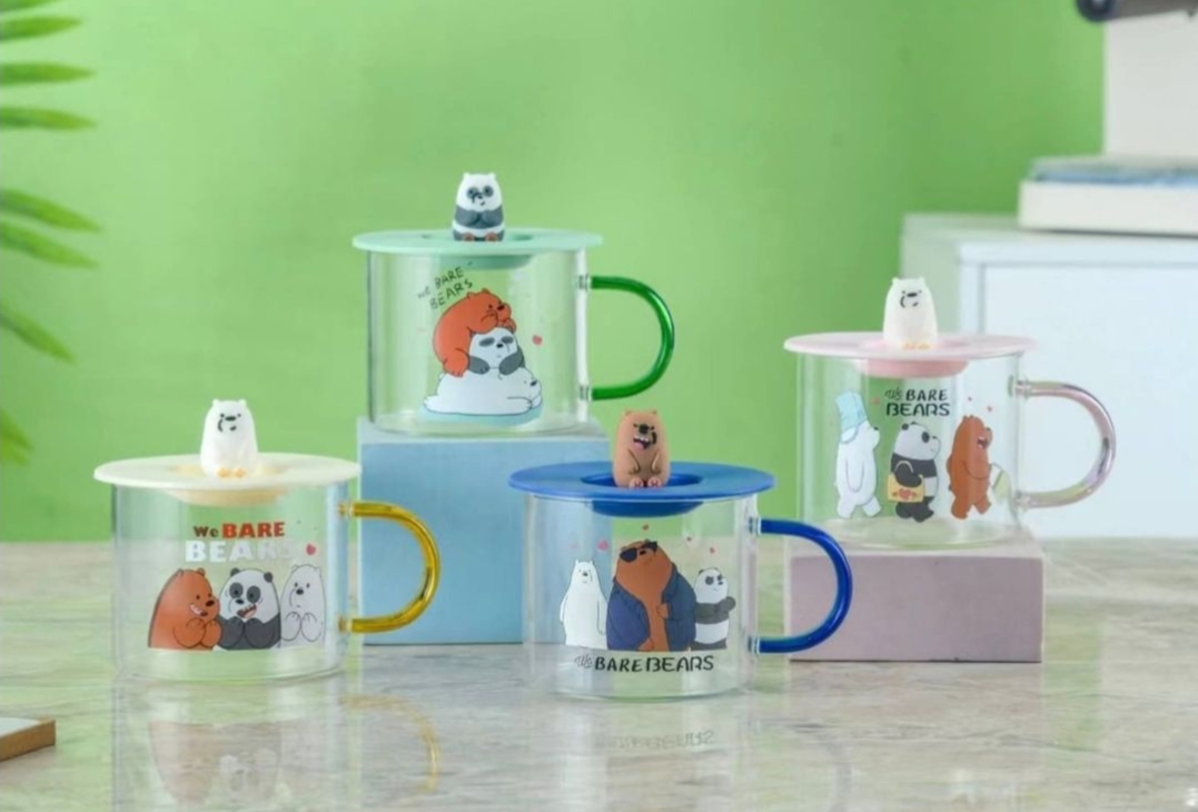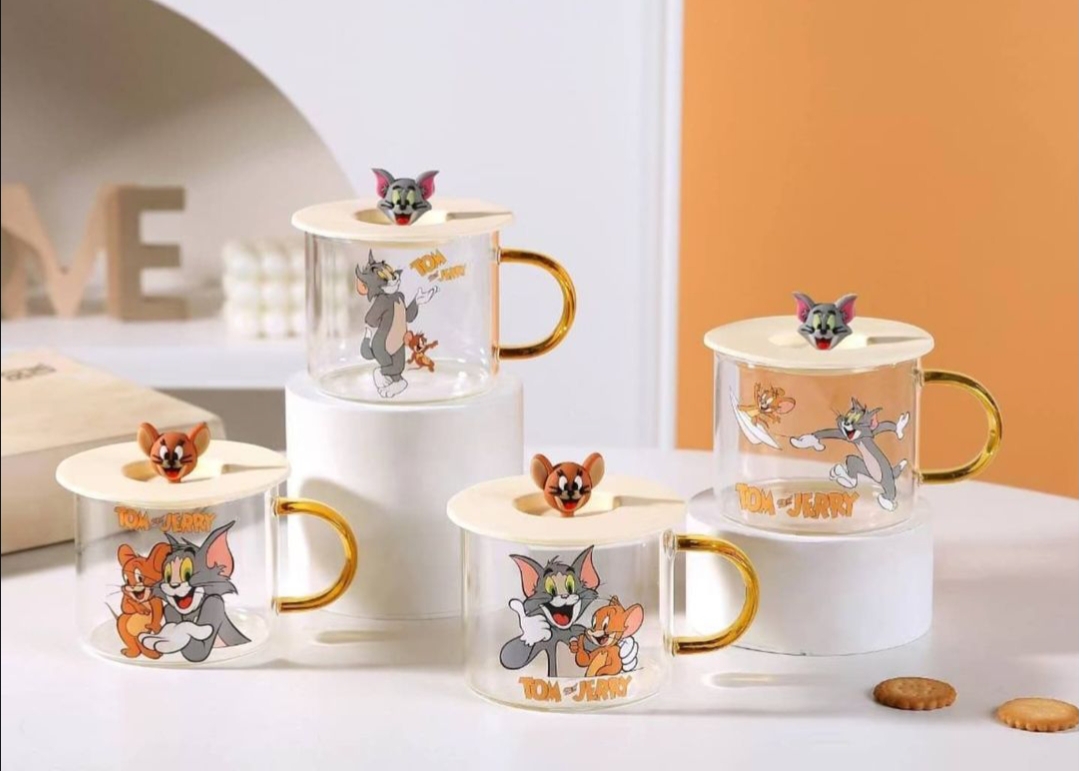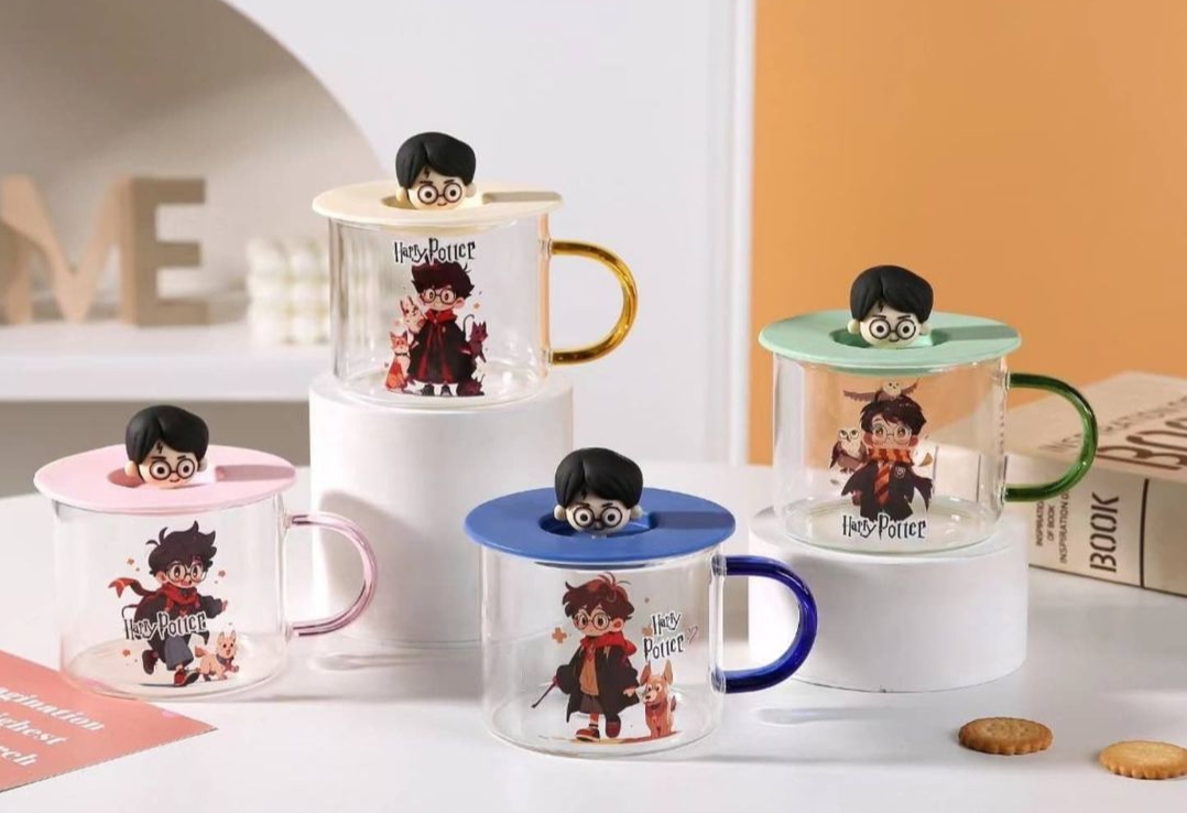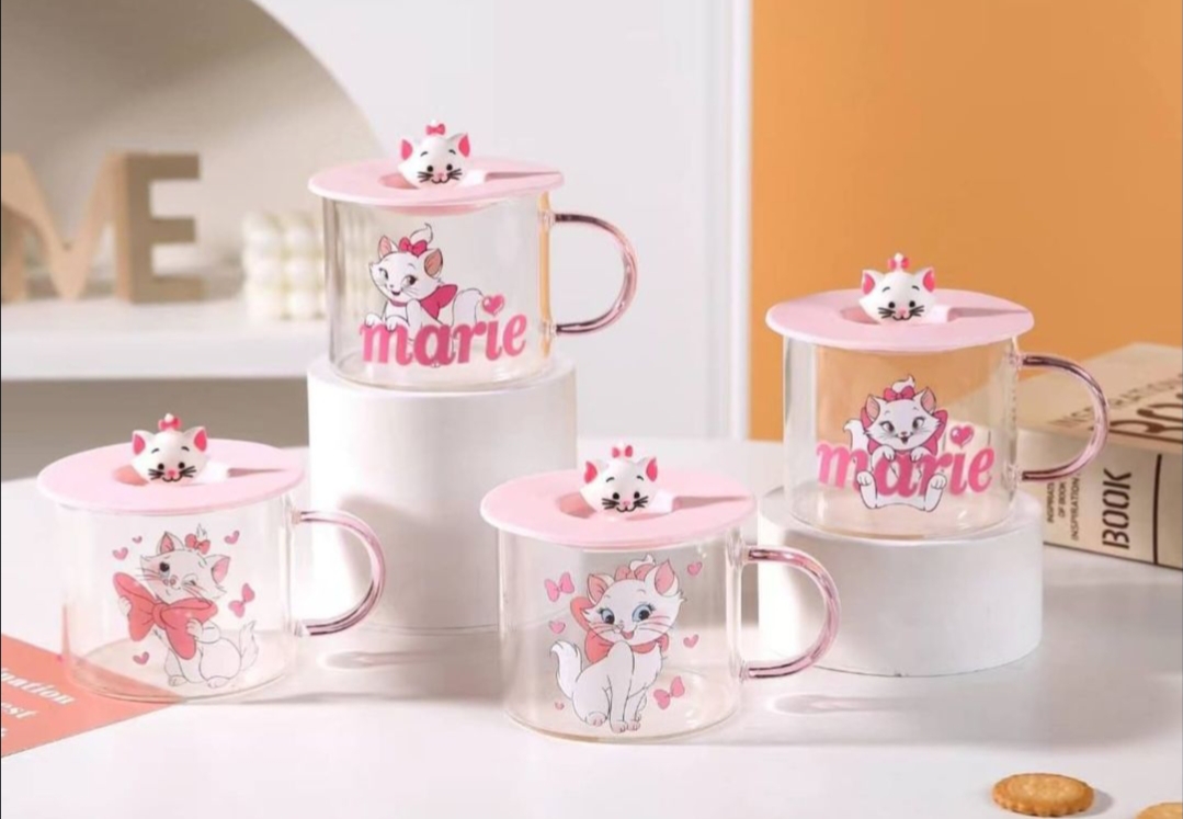 مج زجاج ديزني مستورد بغطاء رابر شخصيه ديزني مجسمه للمشروبات الساخنه والبارده سعه المج 350 مللي