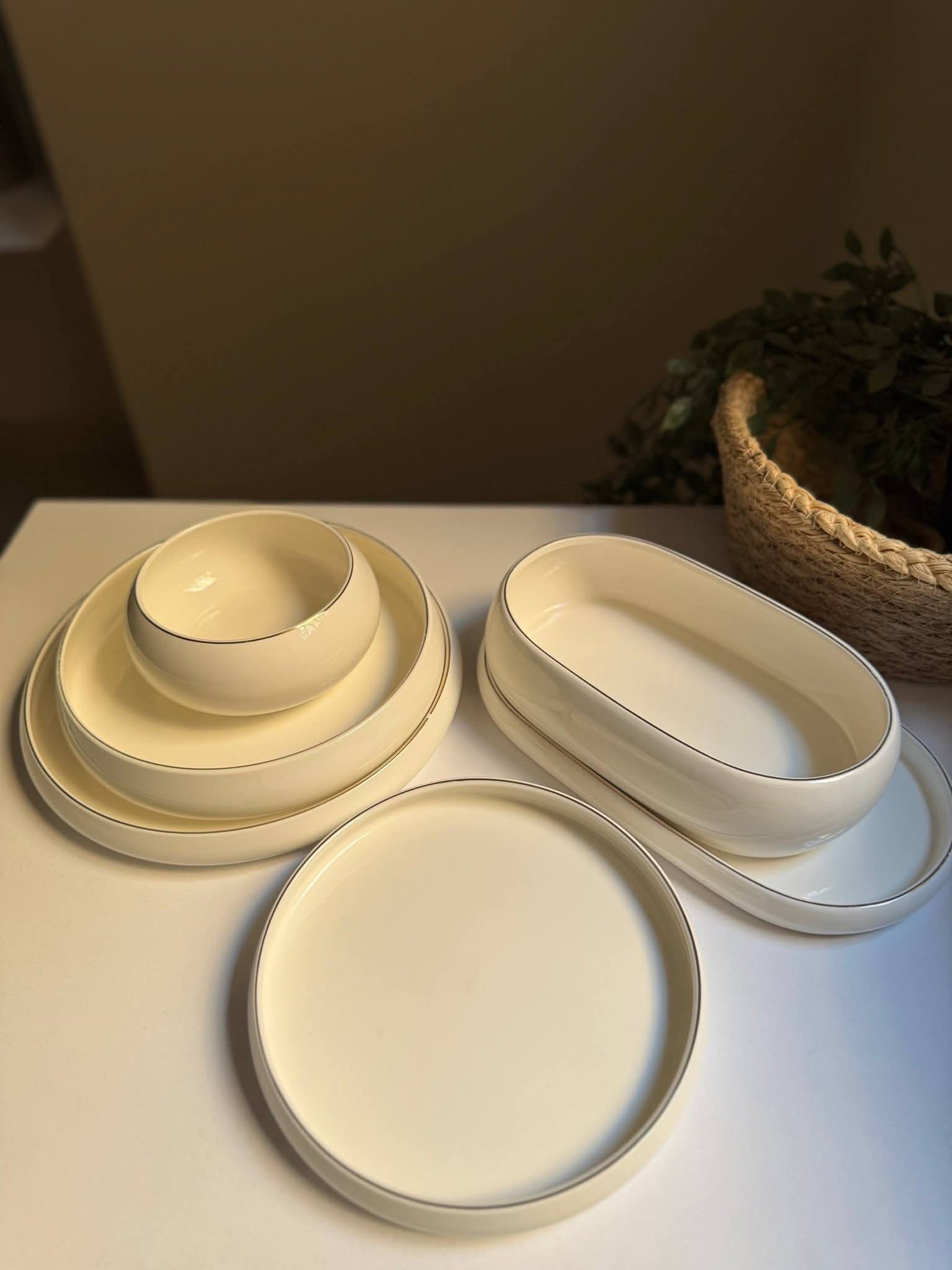 طقم عشا ٢٦ قطعه هيغير سفرتك ٣٦٠ درجه ٦ طبق صغير فلات ٦ طبق كبير ٦ طبق غويط ٦ بوله ١ سرفيس فلات ١ سرفيس غويط