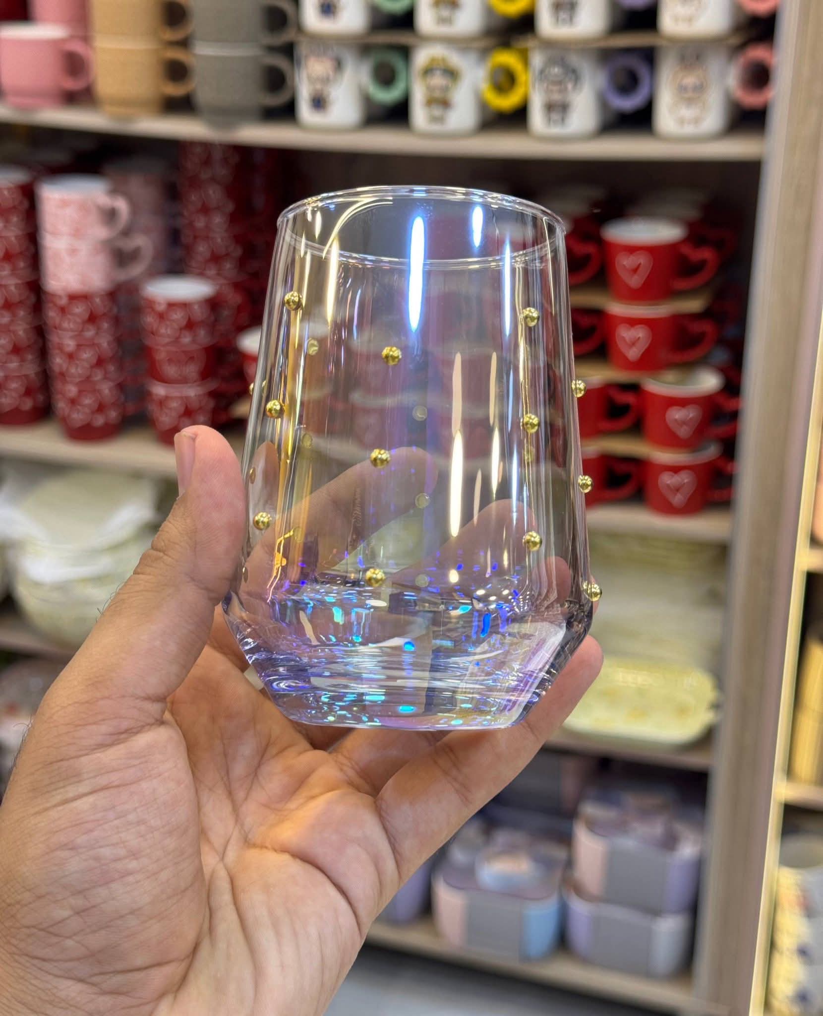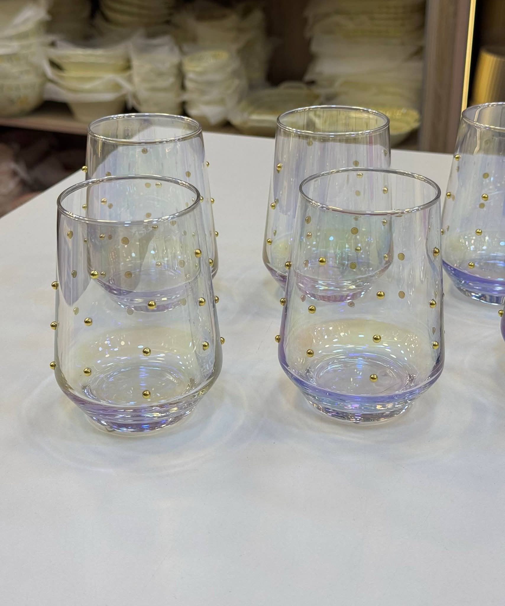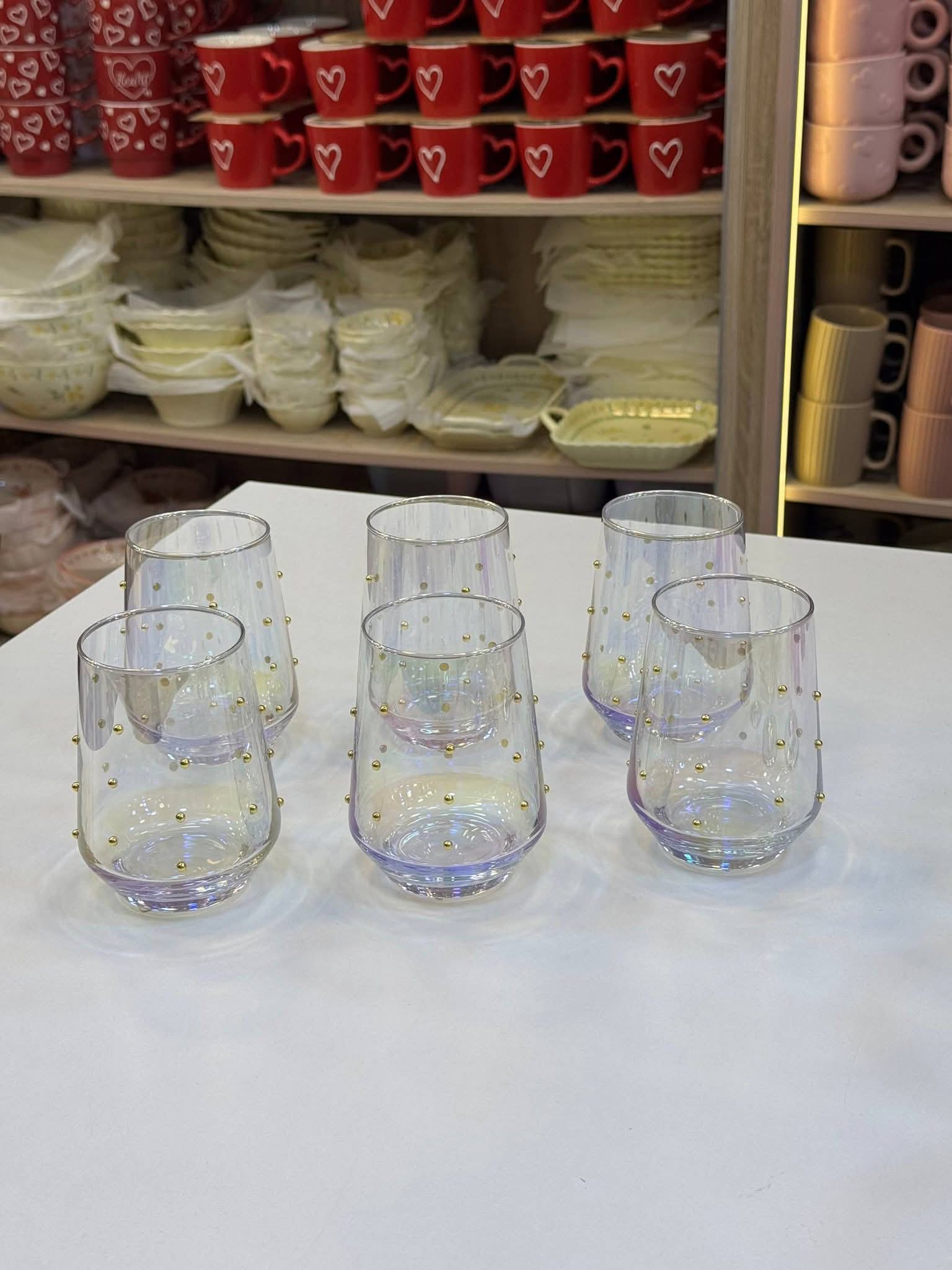 طقم شوب كريستال 6 قطعة زجاج ابيض منقط دهبي مستورد