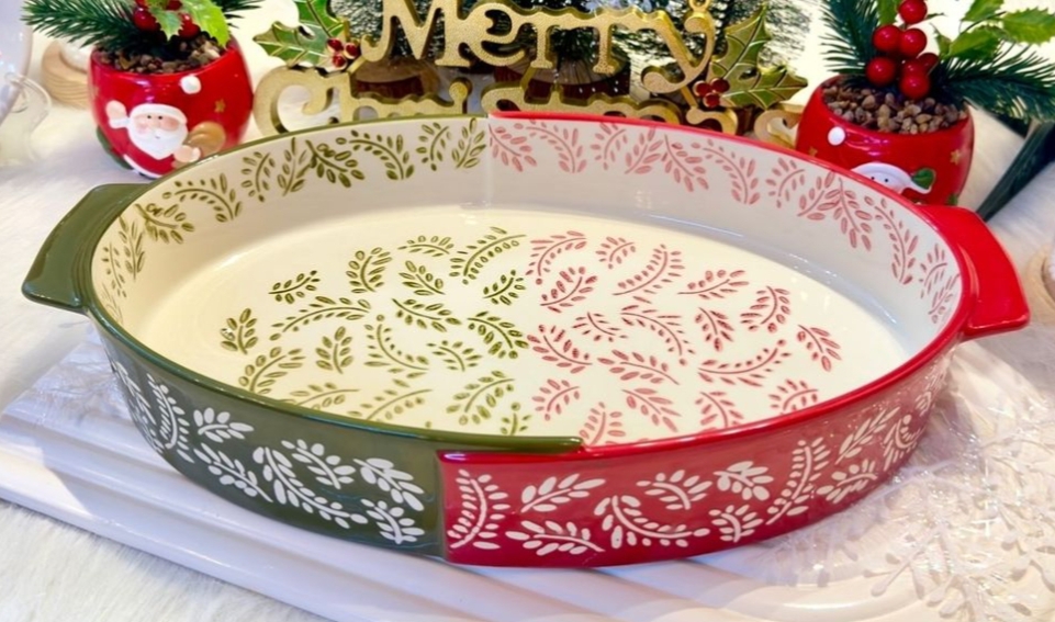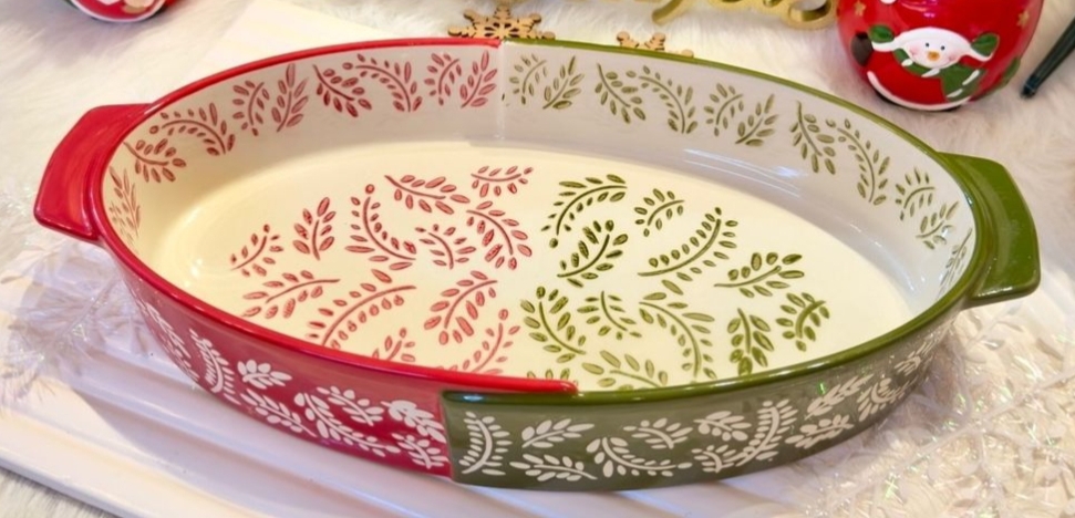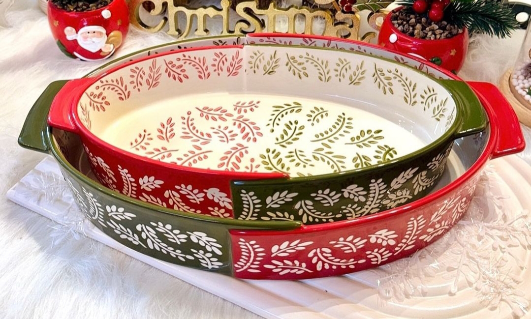 طقم طواجن فرن بيضاوي الشكل بورسلين حراري مستورد بألوان شتويه .